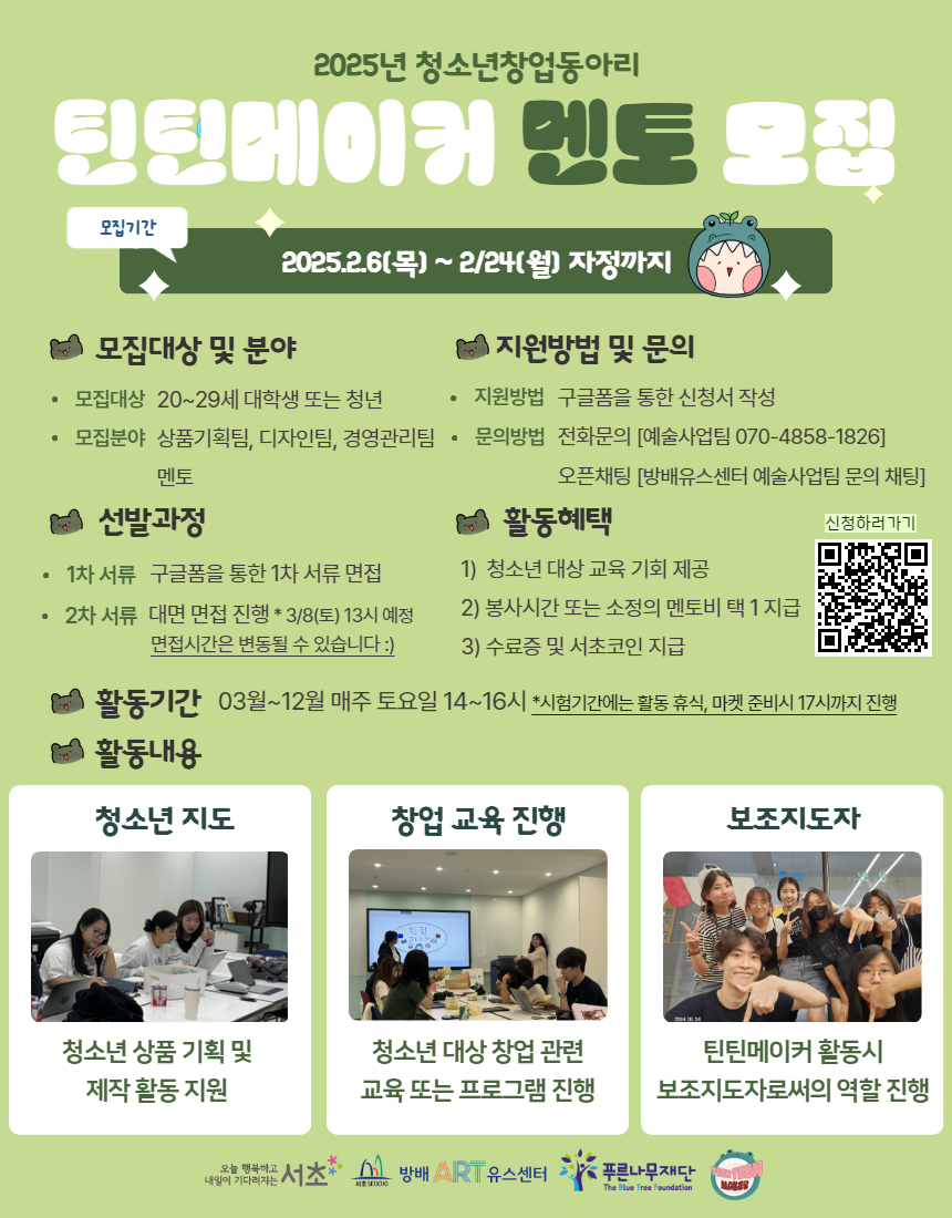 방배ART유스센터 틴틴메이커 멘토를 모집합니다.