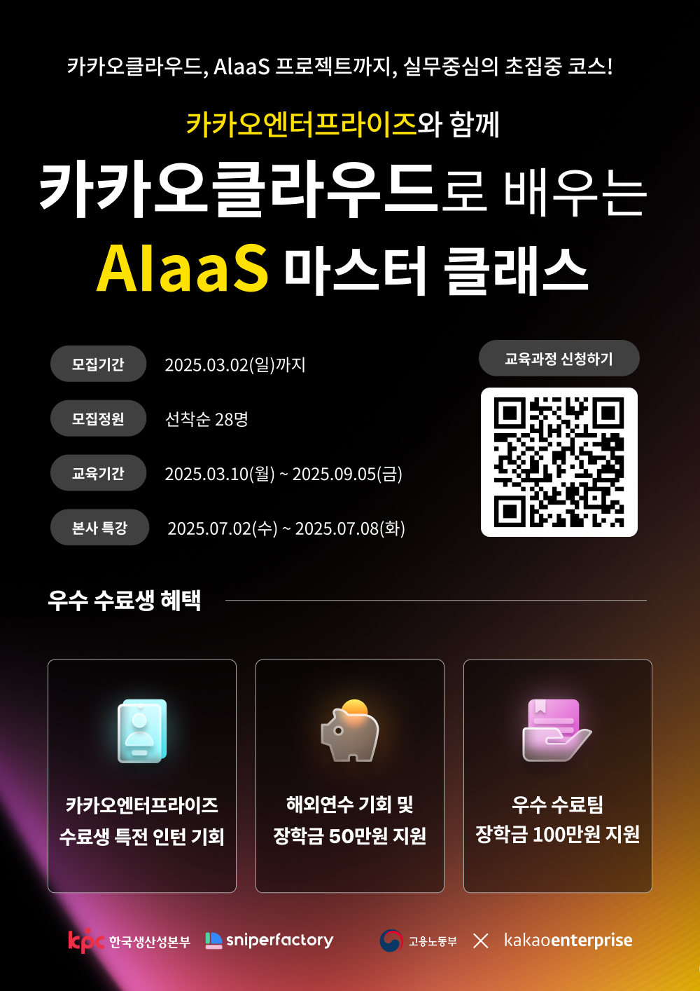 👇카카오클라우드 AIaas 마스터 클래스 수강생 모집👇