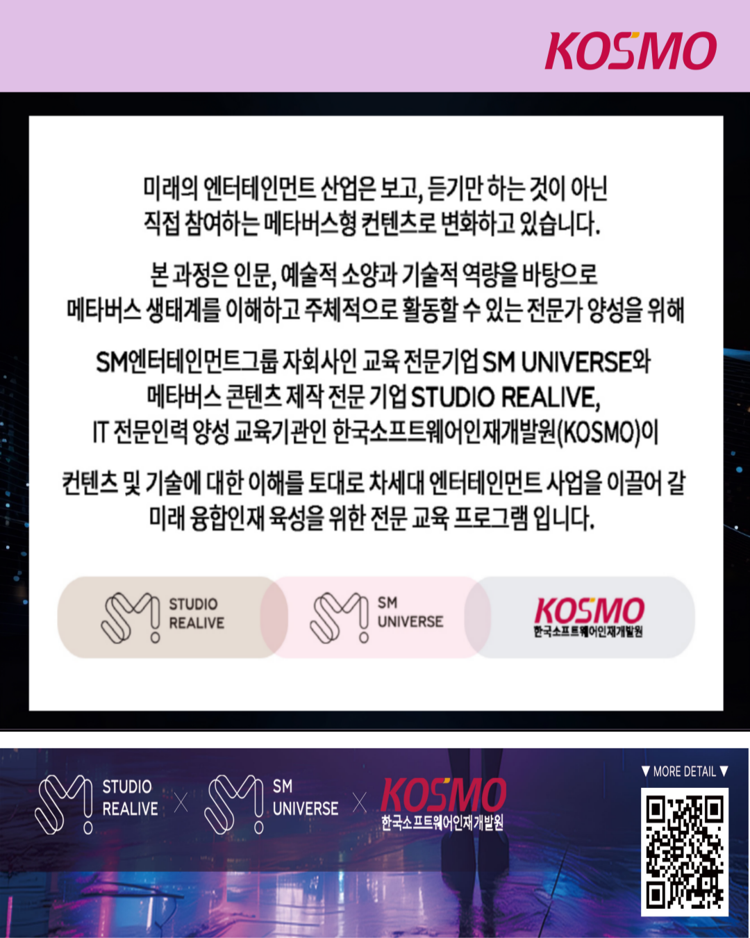 최고의 교육 인프라와 커리큘럼을 통해 차세대 버츄얼 엔터테인먼트 콘텐츠 전문가로 성장할 수 있는 기회! 🎵