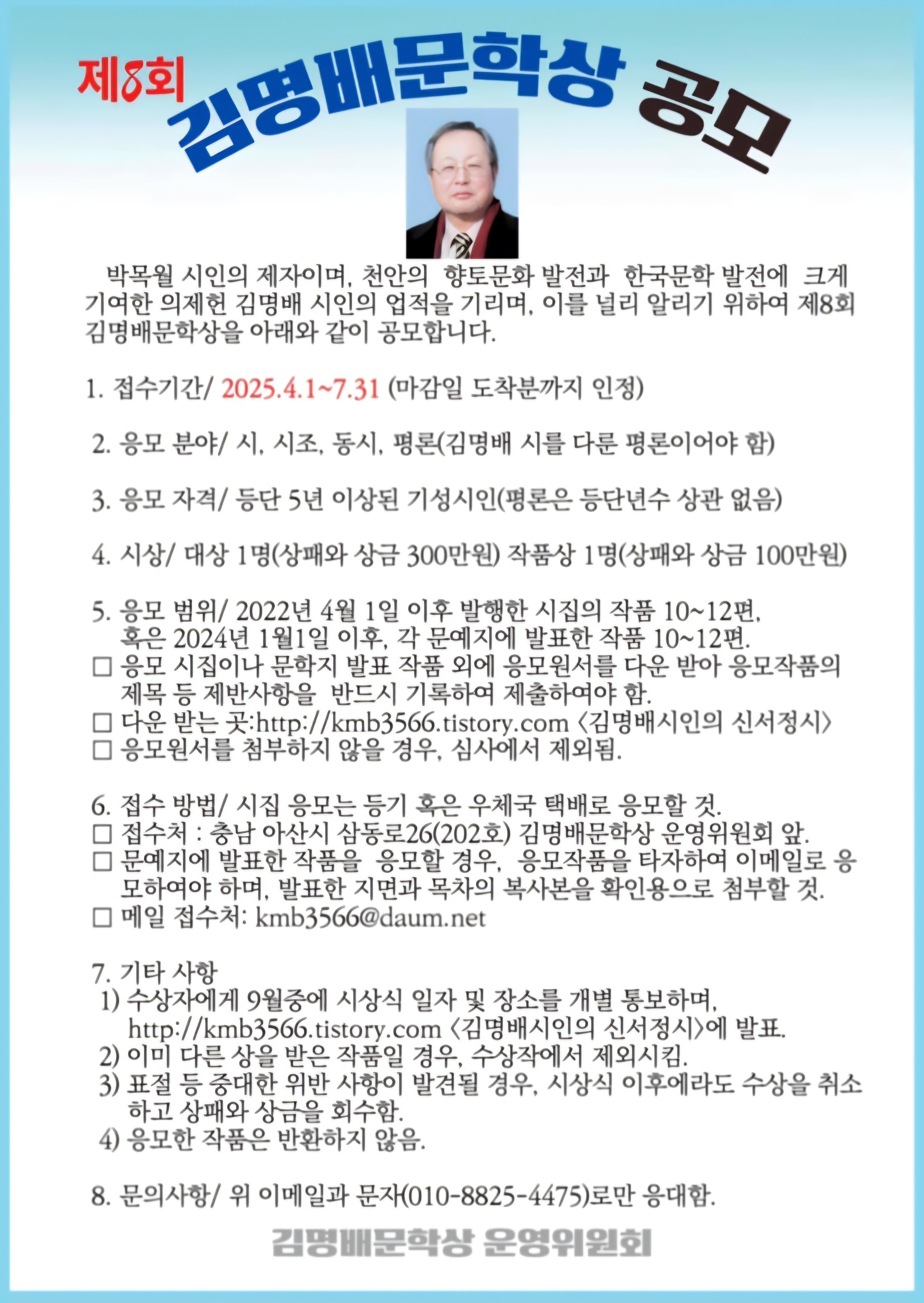 - 접수처 : 충남 아산시 삼동로26(202호) 김명배문학상 운영위원회 앞.