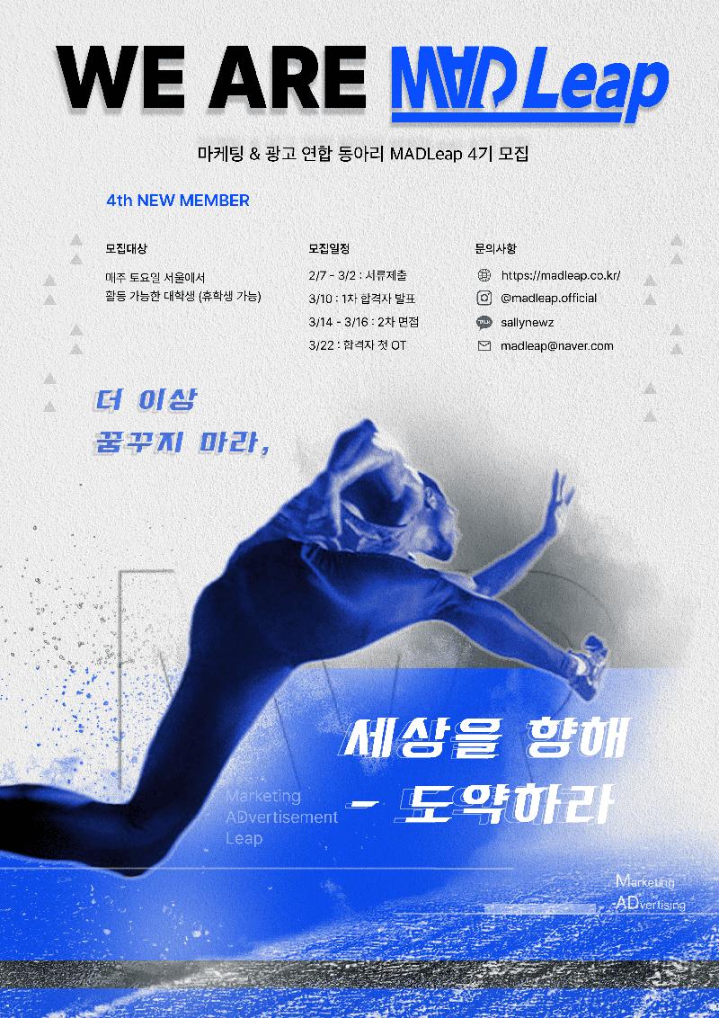์๋ ํ์ธ์! ์ ํฌ๋ ๋ง์ผํ &๊ด๊ณ ๋ํ์ ์ฐํฉ๋์๋ฆฌ MADLeap์ ๋๋ค!