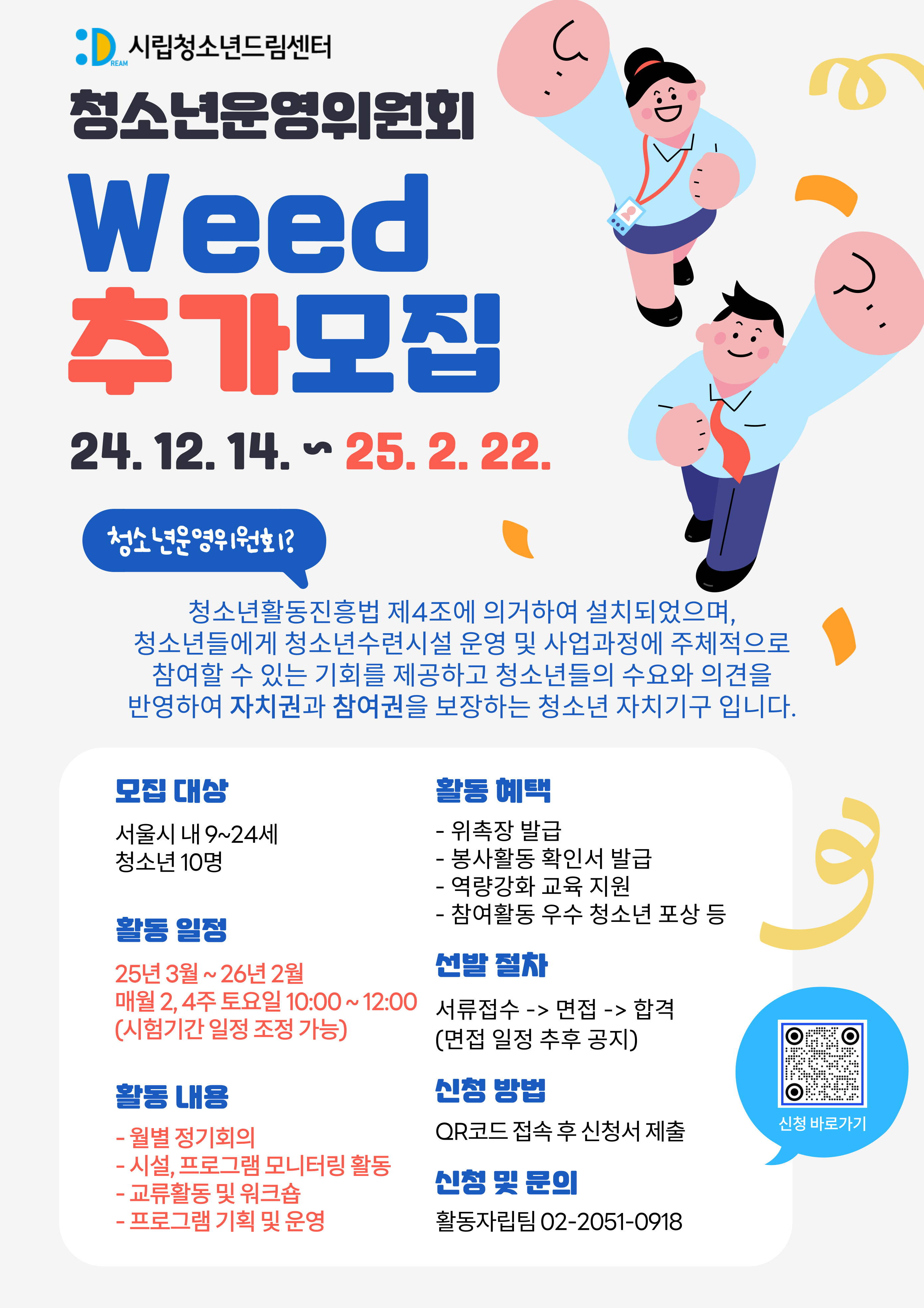 시립청소년드림센터 2025년 청소년운영위원회 모집