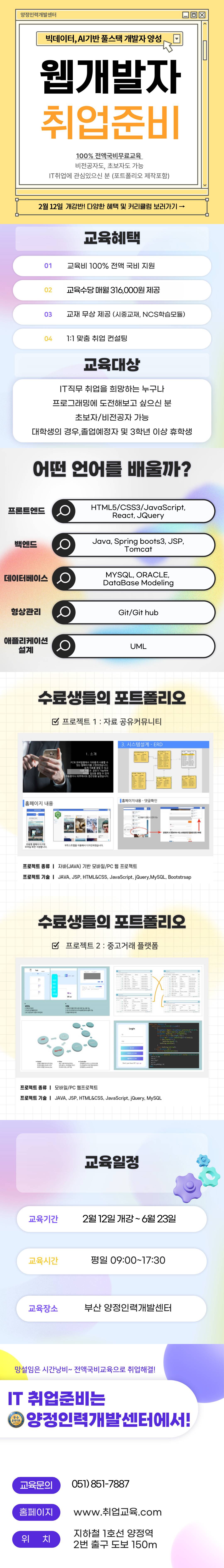 ✔️교육장소 : 고용노동부 지정 우수훈련기관 양정인력개발센터
