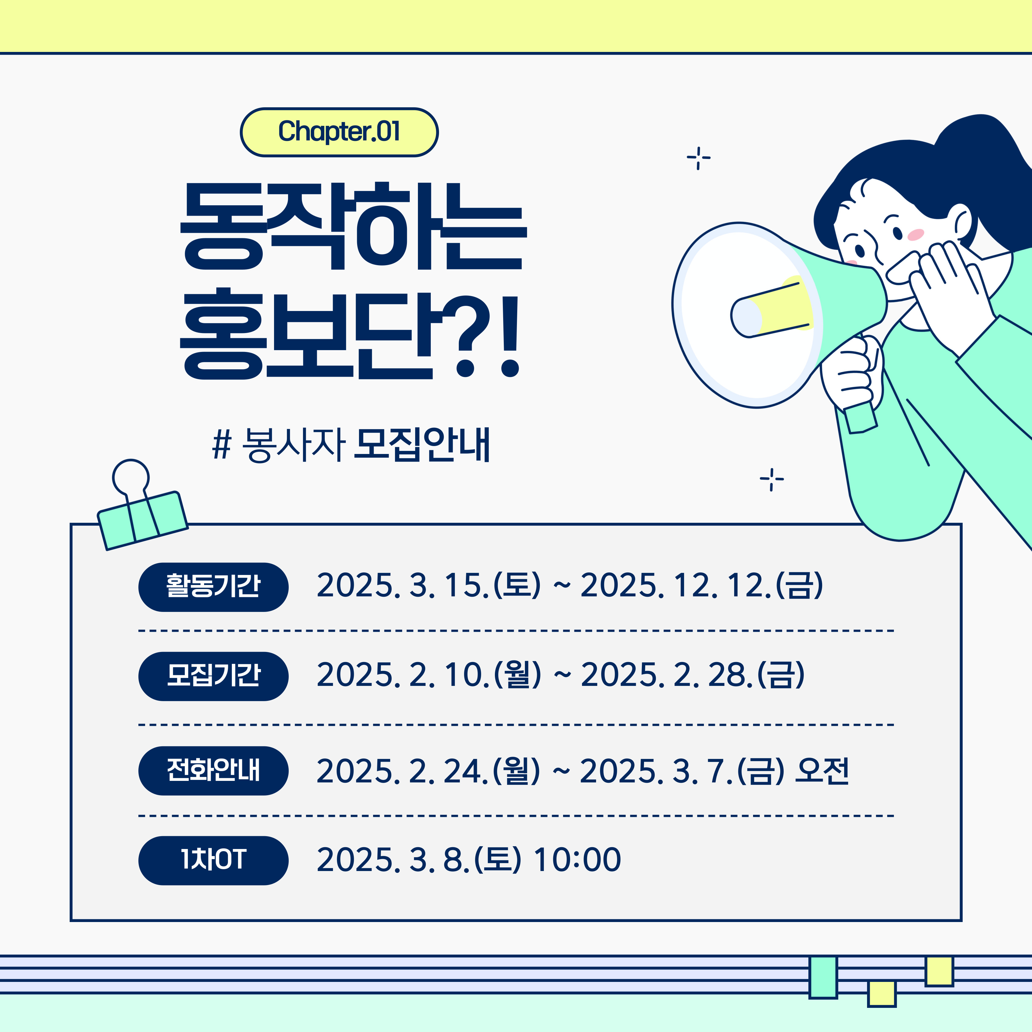1차활동(OT) : 2025. 3. 8.(토) 10:00