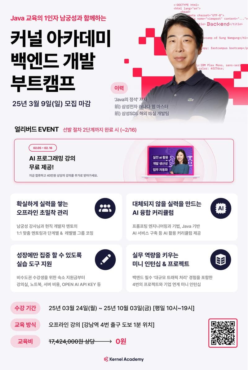 커널 아카데미 : 백엔드 개발 부트캠프 (w. 남궁성) 드디어 OPEN!