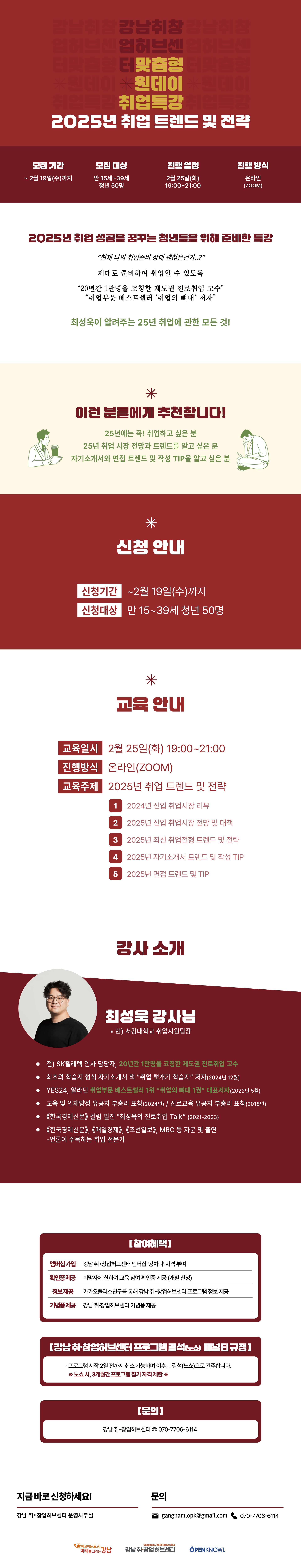 [강남 취•창업허브센터] 2월 맞춤형 원데이 취업특강 : 2025년 취업 트렌드 및 전략