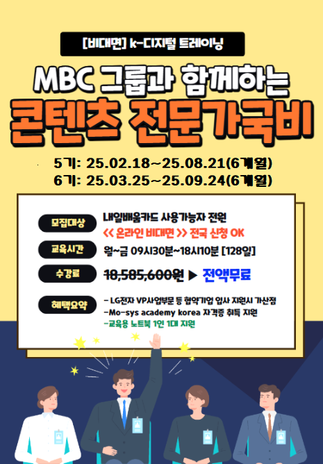 - MBC그룹이 직접 운영하며 MBC+가 인증한 최고의 강사진이 교육