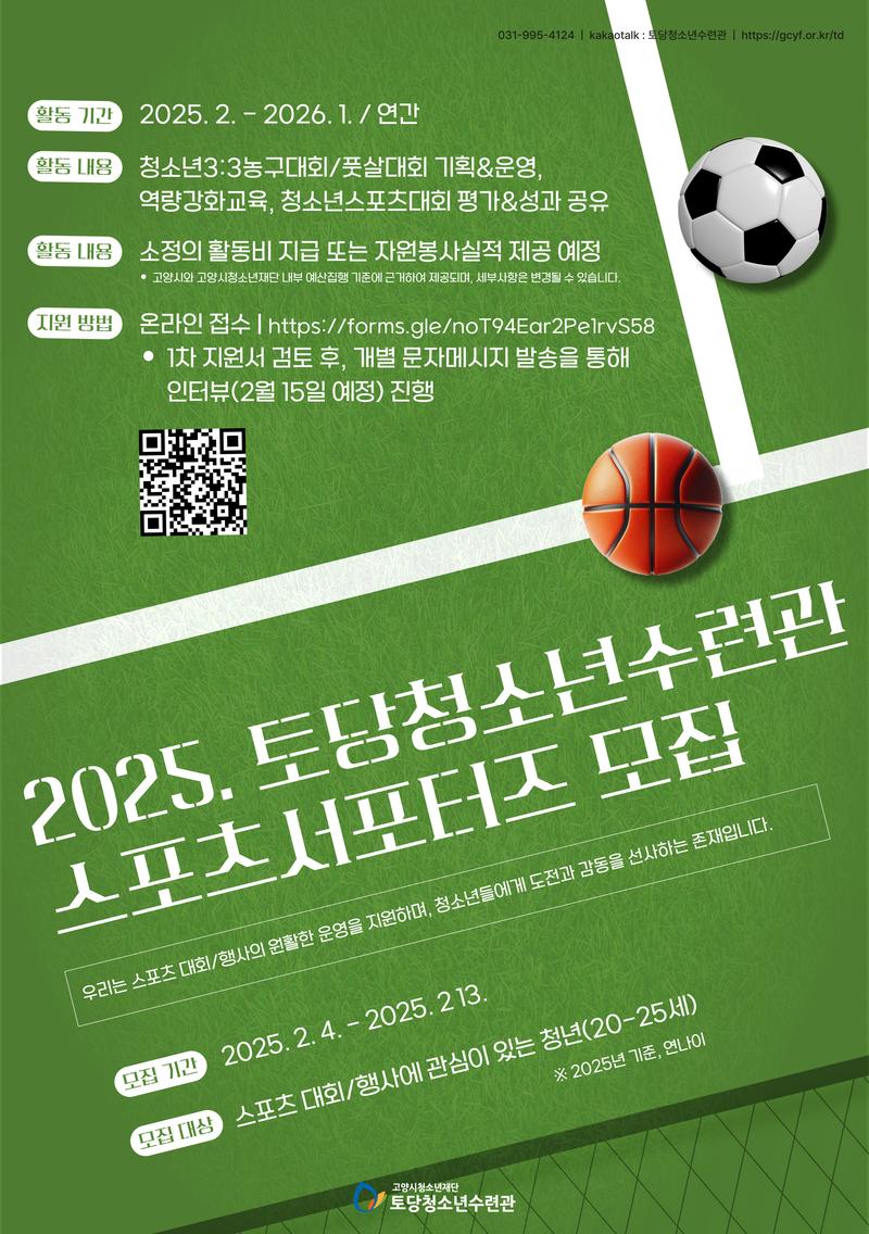 [고양시청소년재단 토당청소년수련관 청년 스포츠서포터즈 모집]
