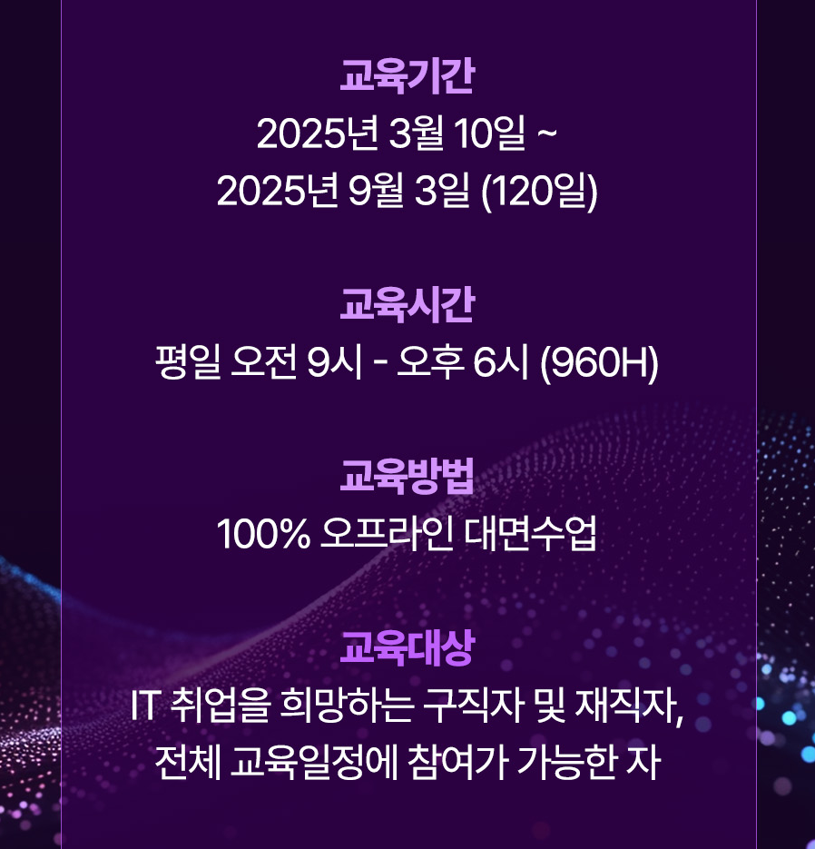 ■ 교육기간 : 6기 / 2025.03.10 ~ 2025.09.03