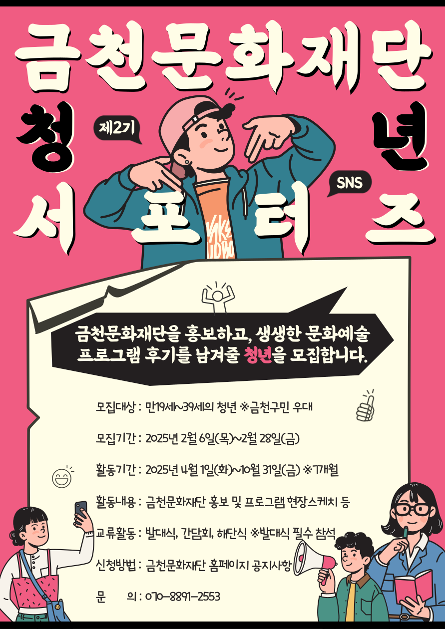 금천문화재단을 알리고, 생생한 문화예술프로그램 후기를 남겨 줄 청년을 모집합니다🙌🏻