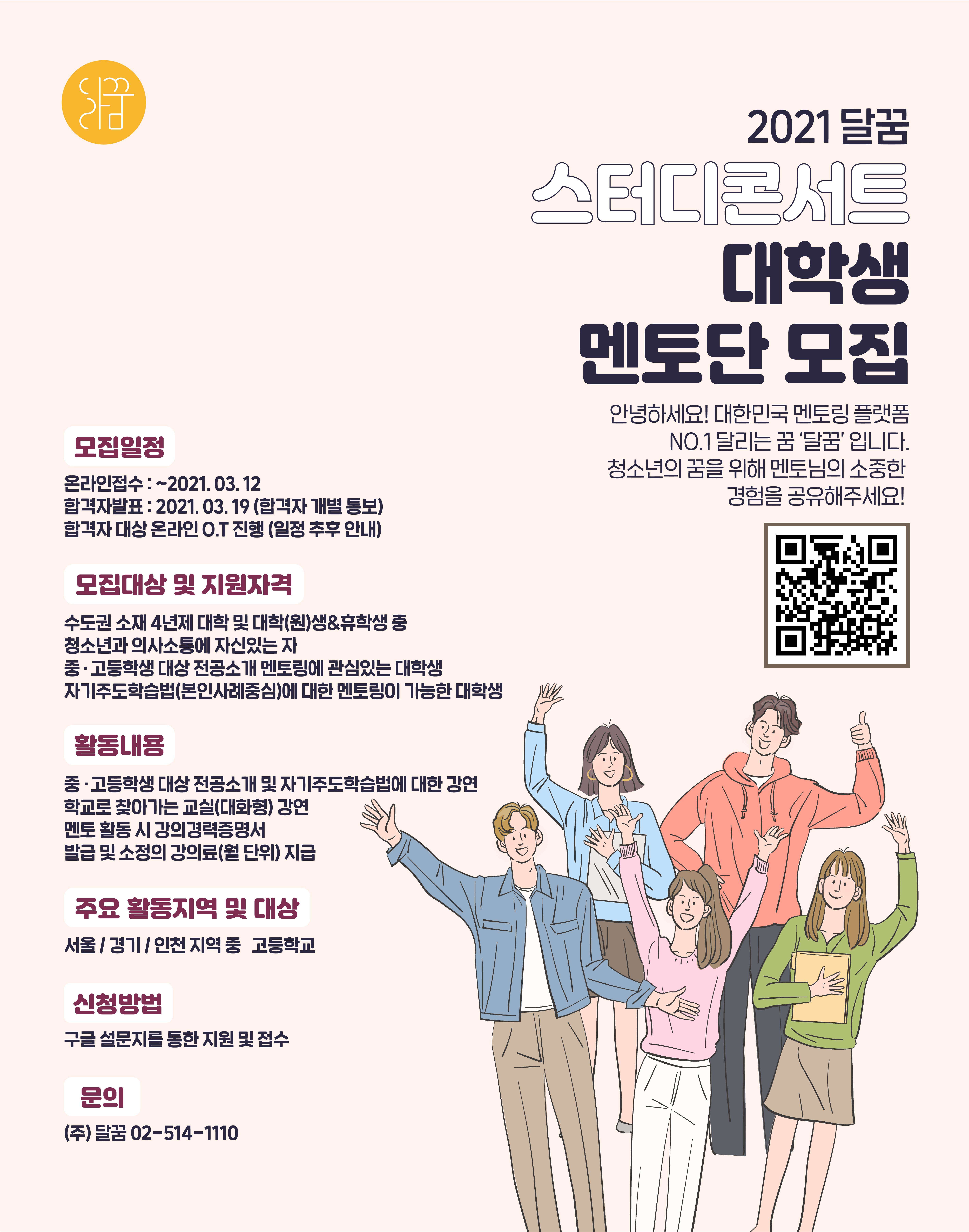 알바형 멘토링 "2021 달꿈 스터디콘서트 멘토단 " 망설이지 말고 지원해주세요!