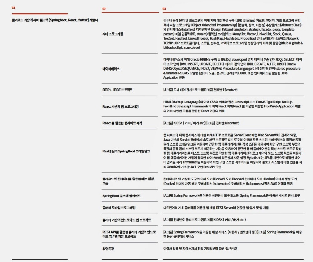 - 클라우드 기반의 자바 풀스택 (Springboot, React, flutter) 개발자