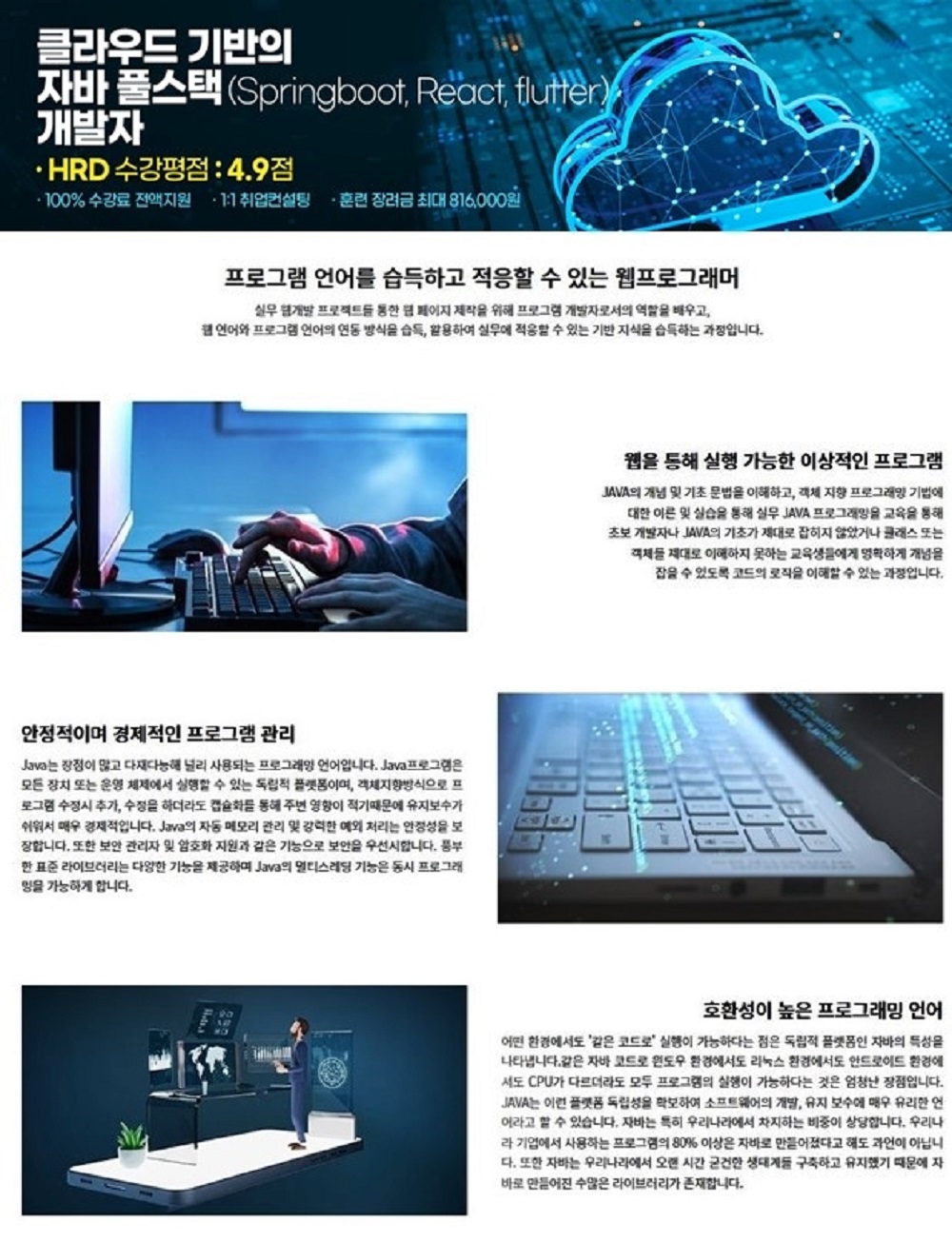 - 웹 프론트엔드, 백엔드 프로그램 언어와 기술 습득을 통한 전문 개발자 양성