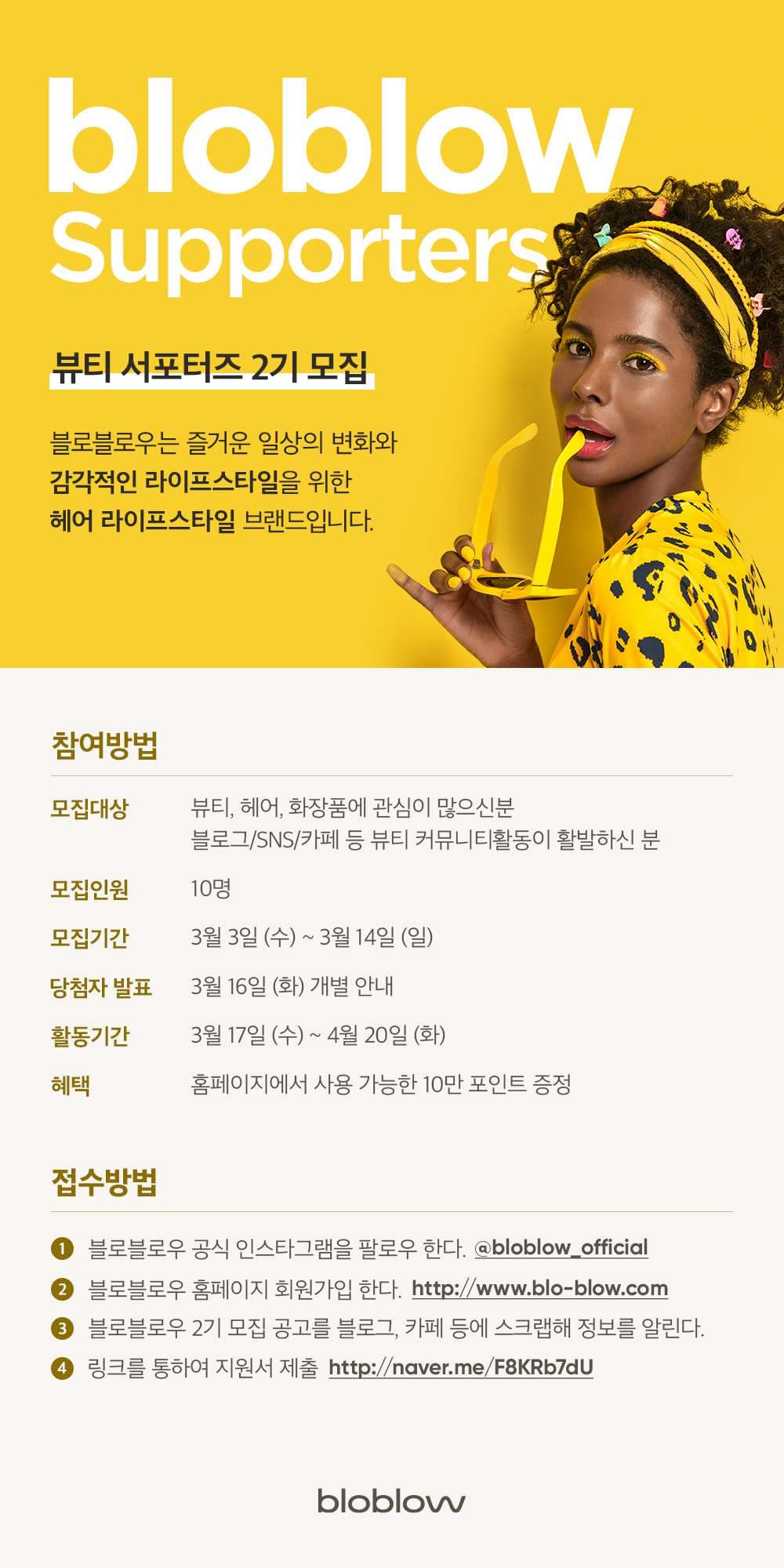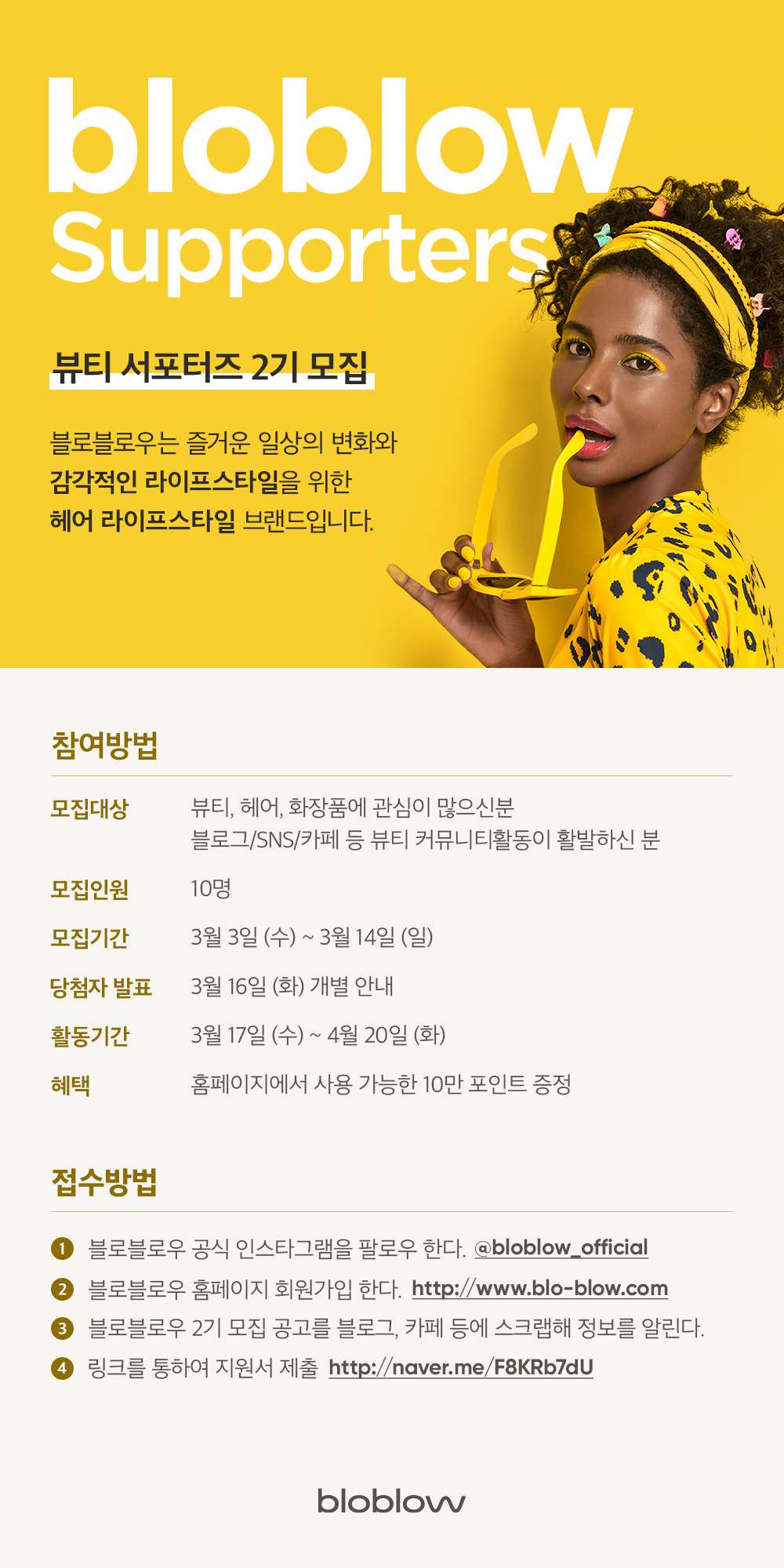 - 헤어라이프스타일 브랜드, 블로블로우(bloblow) 서포터즈 2기 모집
