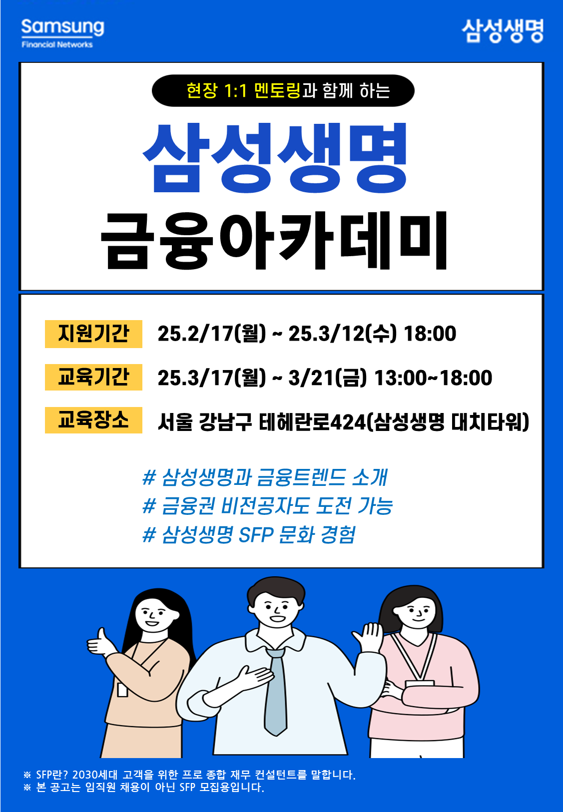 - 교육장소 : 서울 서초구 서초대로 74길 4 (삼성생명 서초타워)