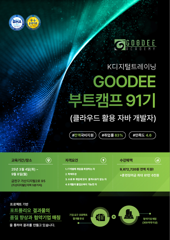 - 교육장소 : 서울시 금천구 가산디지털2로 95, KM타워 3층 구디아카데미
