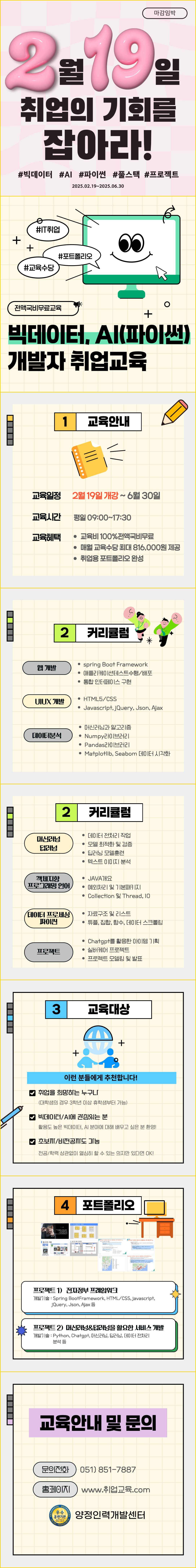 ✔️교육장소 : 고용노동부 지정 우수훈련기관 양정인력개발센터