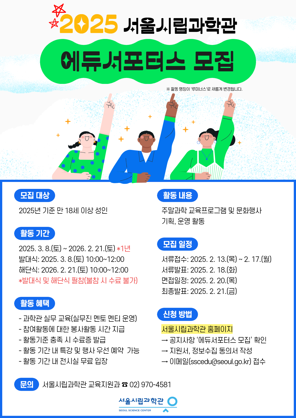 『서울시립과학관 에듀서포터스 모집 안내』