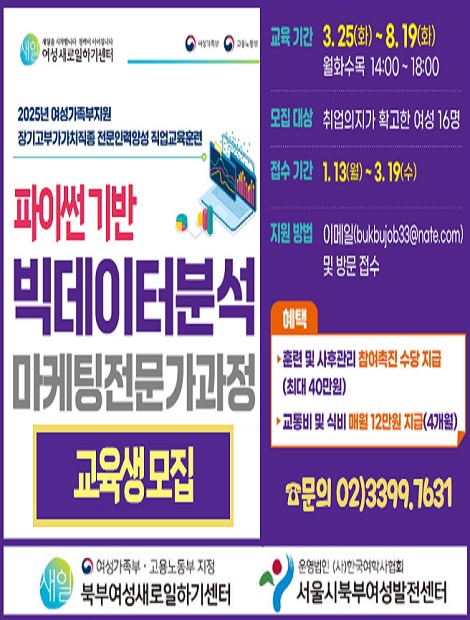 [여성가족부_참여촉진수당 지급]파이썬기반 빅데이터분석마케팅전문가과정 교육생 모집