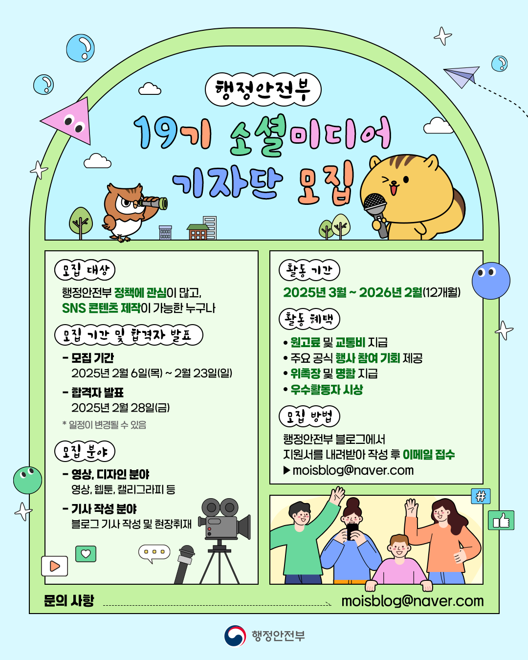 🔔 행정안전부 19기 소셜미디어 기자단 모집 안내