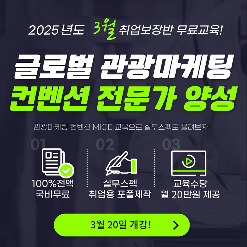 [취업특화] 관광마케팅/MICE컨벤션 취업실무 교육생 모집(취업률 87.5%)