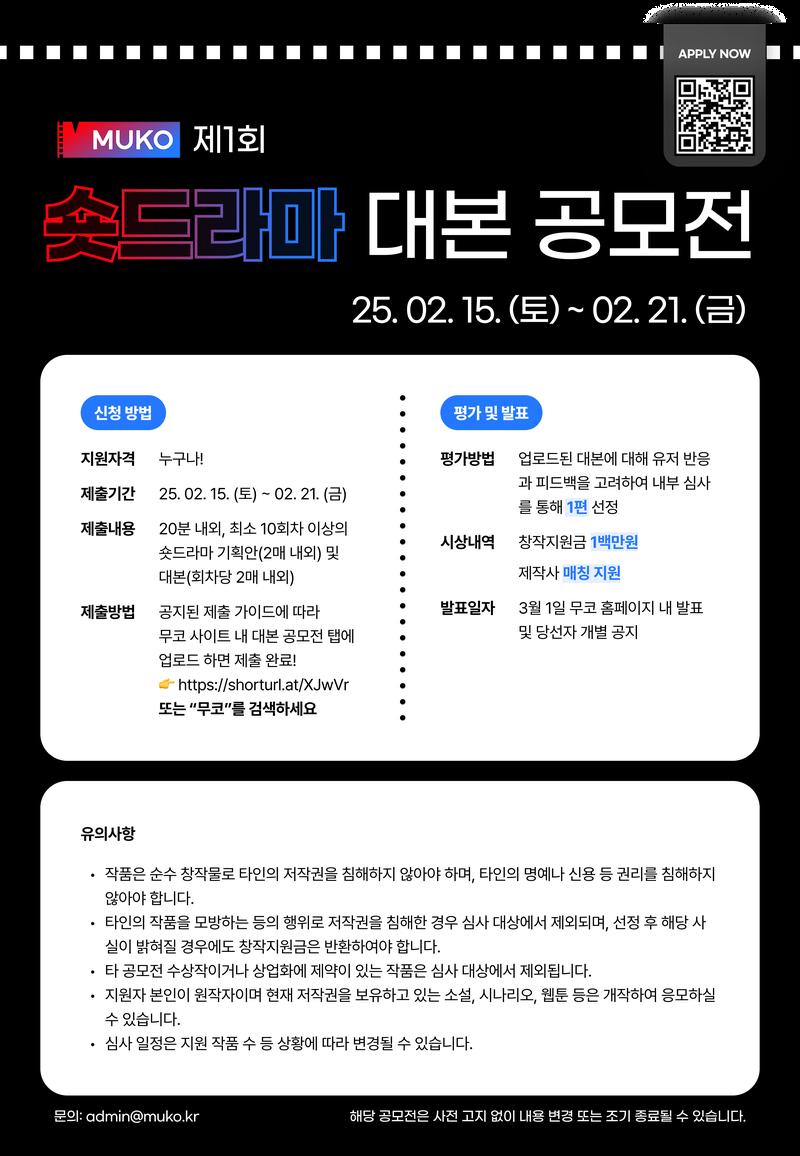 결과 발표: 2025년 3월 1일 (무코 홈페이지 및 당선자 개별 공지)