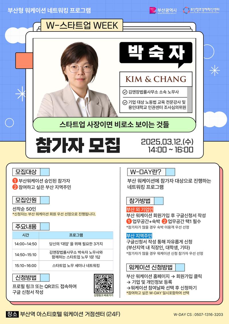 📢 본 프로그램은 부산 워케이션 참가자, 부산 소재 창업자 및 예비 창업자만 신청하실 수 있습니다.
