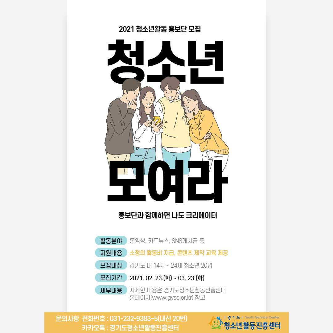 - 카카오톡 플러스친구 "경기도청소년활동진흥센터" 문의