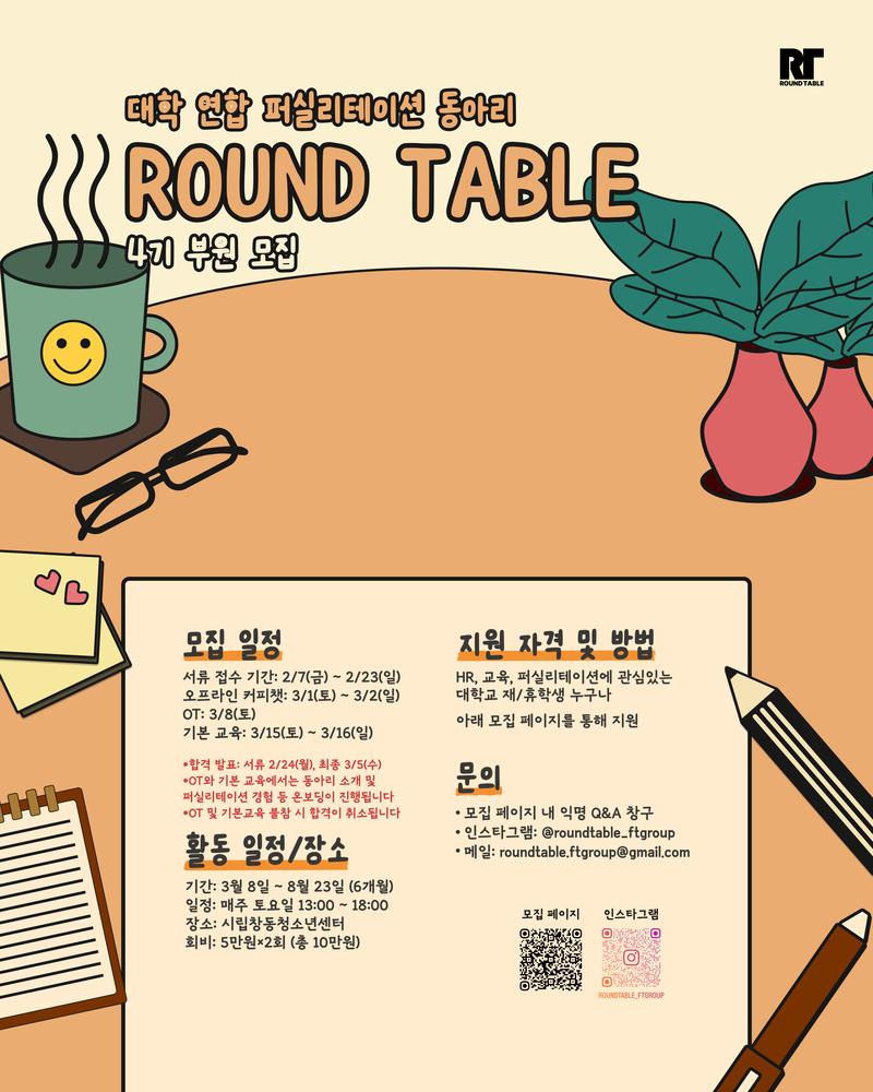 📌 보다 자세한 정보는 모집 페이지를 참고해주세요! 👉🏻 https://roundtable.com/recruit