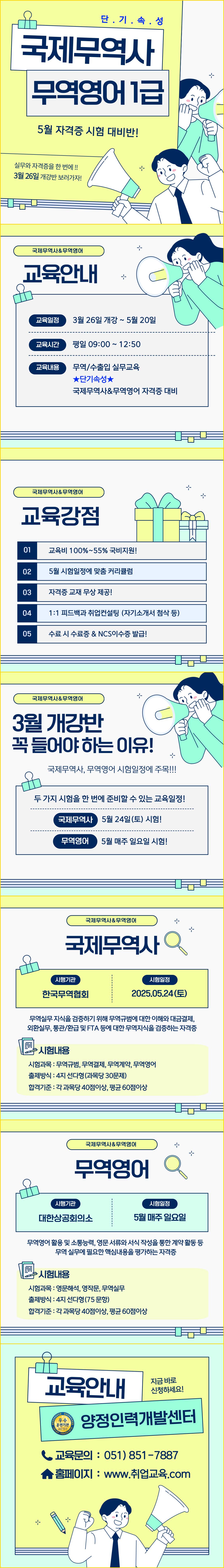 [국비지원] 국제무역사&무역영어1급 5월 시험 대비반! (3월 개강)