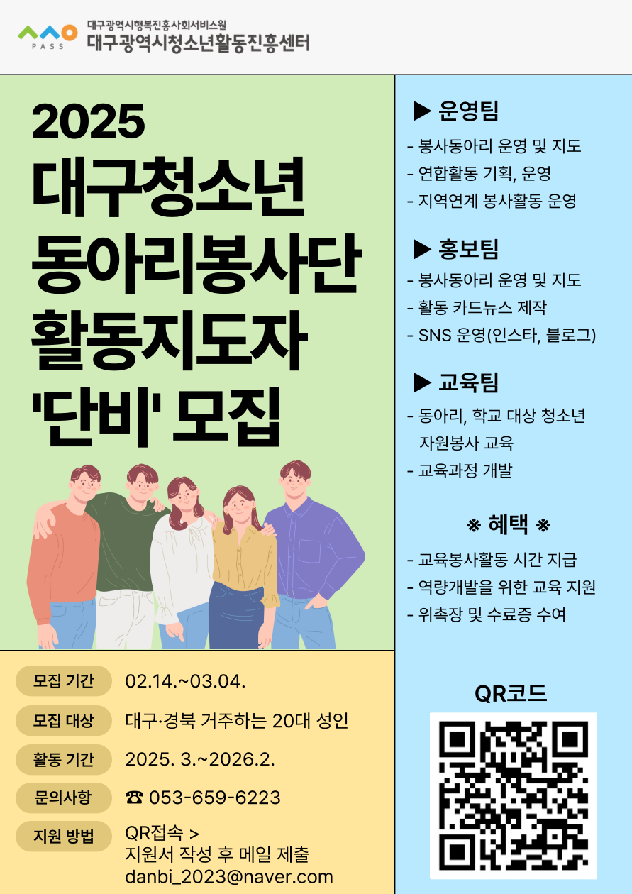 📣 2025 대구청소년 동아리봉사단 활동지도자 '단비' 모집 🌟