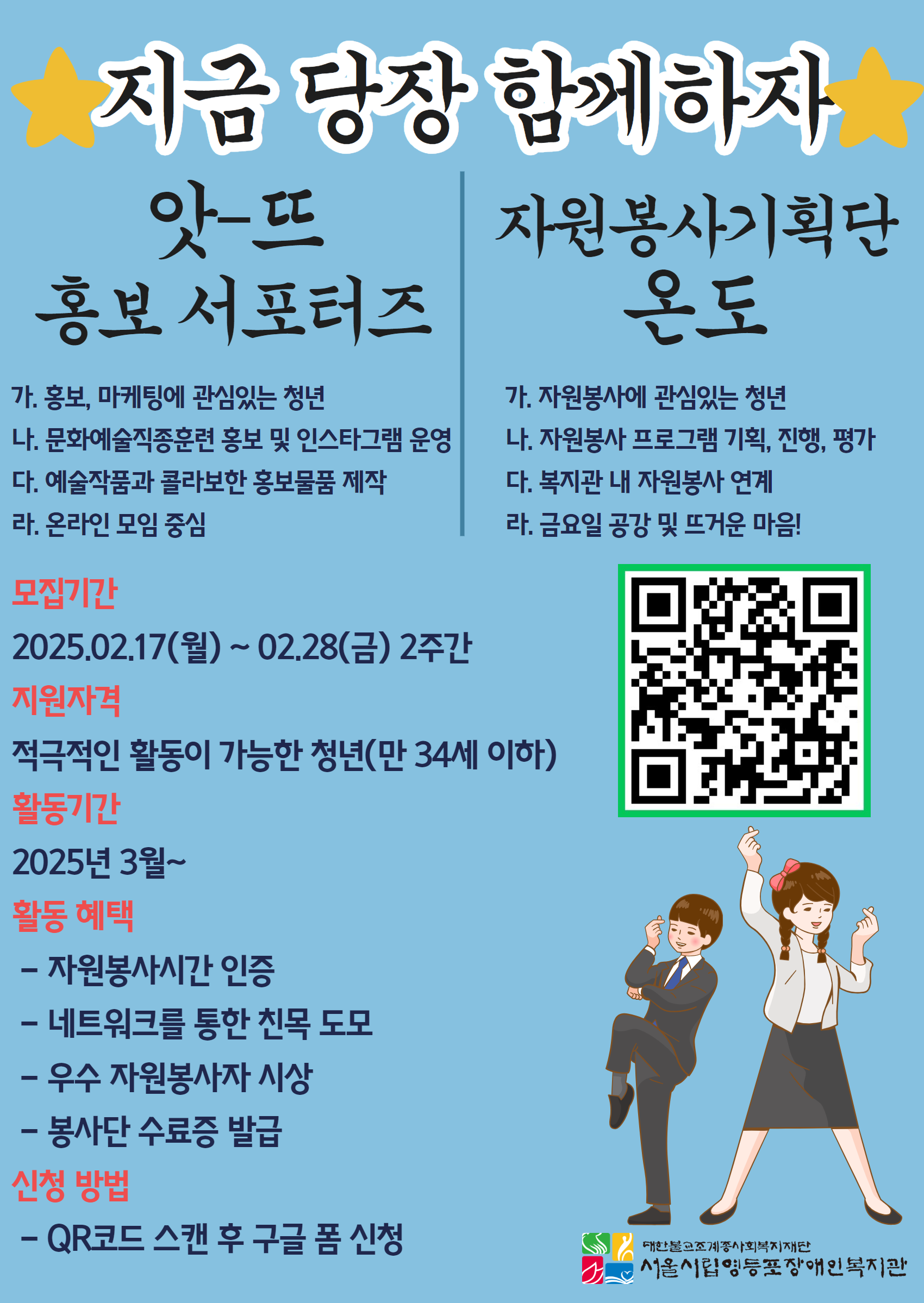 서울시립영등포장애인복지관은 2025년 온도상사의 팀원을 모집합니다.