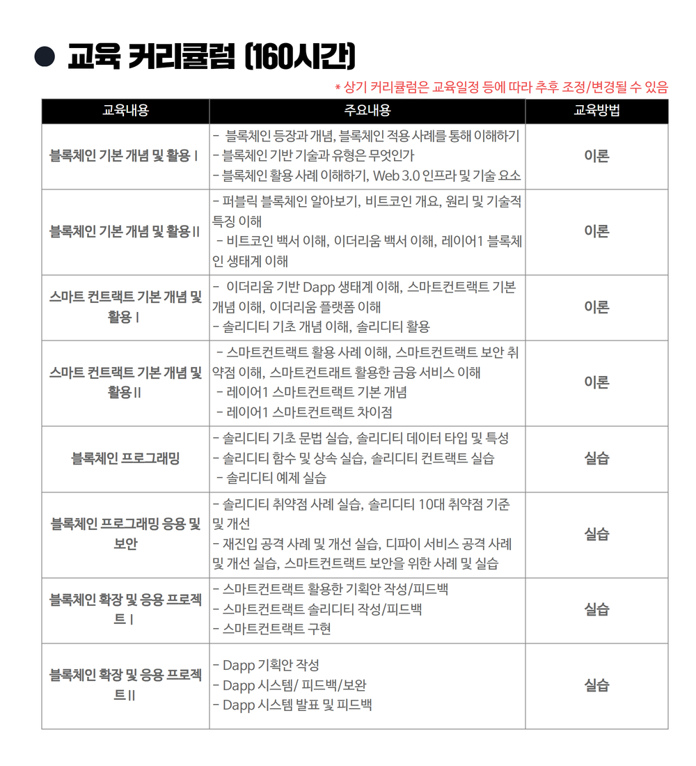 * 160H 과정은 교육 시작일 OT, 환경설정을 위하여 오프라인 교육 병행하여 운영