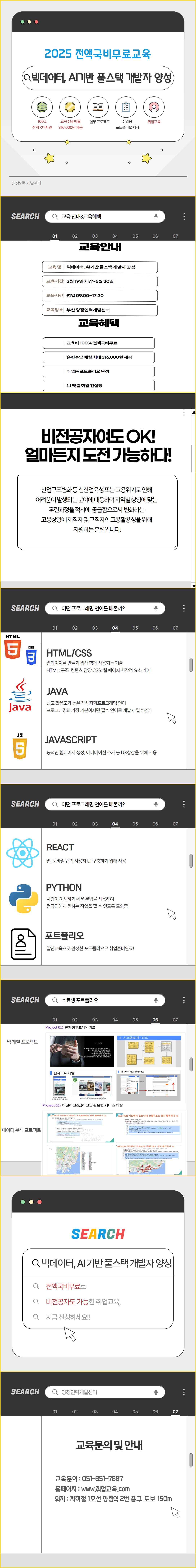- 프론트엔드 개발: HTML, CSS, JavaScript, React 등 웹 개발 기초부터 실무 활용까지!