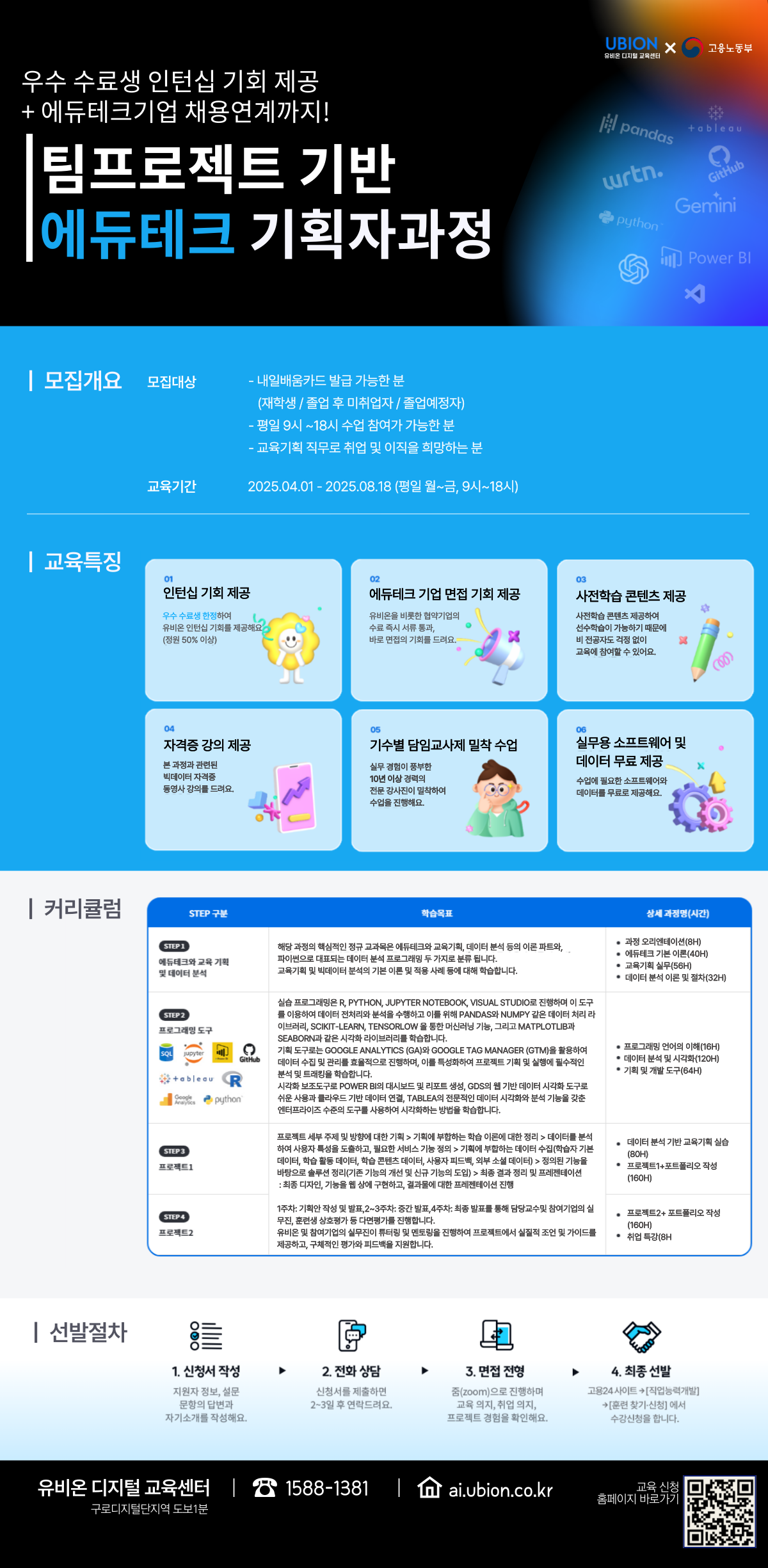 [프로젝트 기반 에듀테크 기획자 과정]으로 데이터 기반의 의사결정으로 효과적인 교육 설계 및 콘텐츠 기획할 수 있어요!