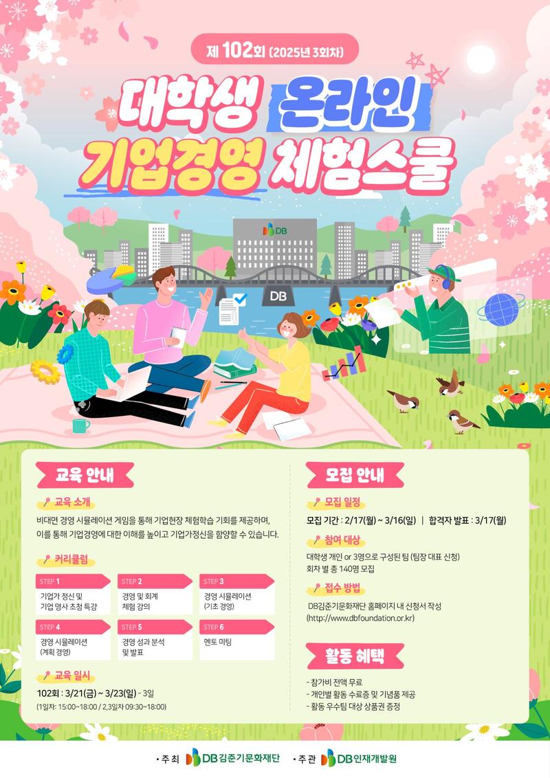 [DB김준기문화재단] 제102회 대학생 온라인 기업경영 체험스쿨 참가자 모집