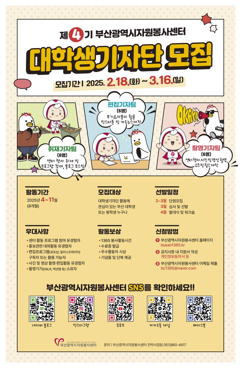 3) 모집대상 : 대학생기자단 활동에 관심이 있는 부산 대학생 누구나