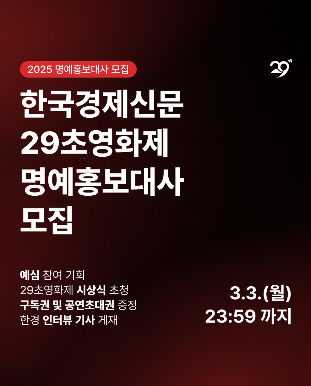 [한국경제신문 29초영화제 ‘2025 명예홍보대사’ 모집공고]