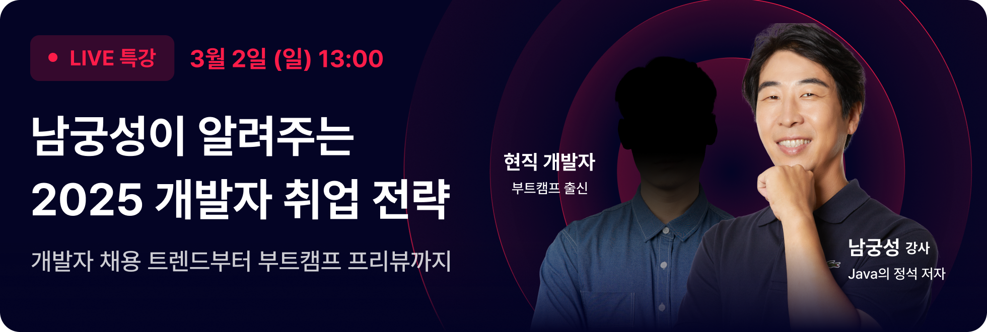 2월 26일(수)까지 간단한 사전신청만 해도, <남궁성의 개발자 취업 전략 설명회> 초대권💌 제공!