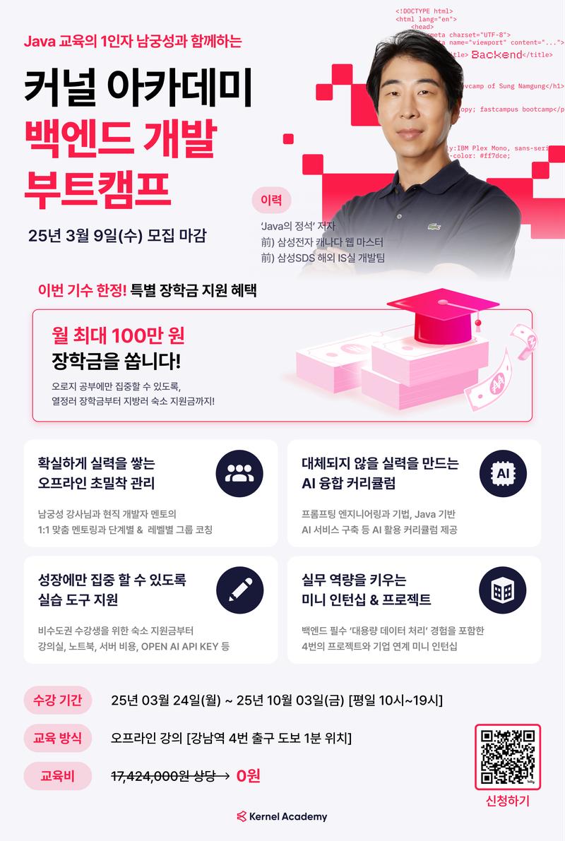 커널아카데미가 🔥매달 장학금 100만원씩 통 크게 쏩니다!🔥