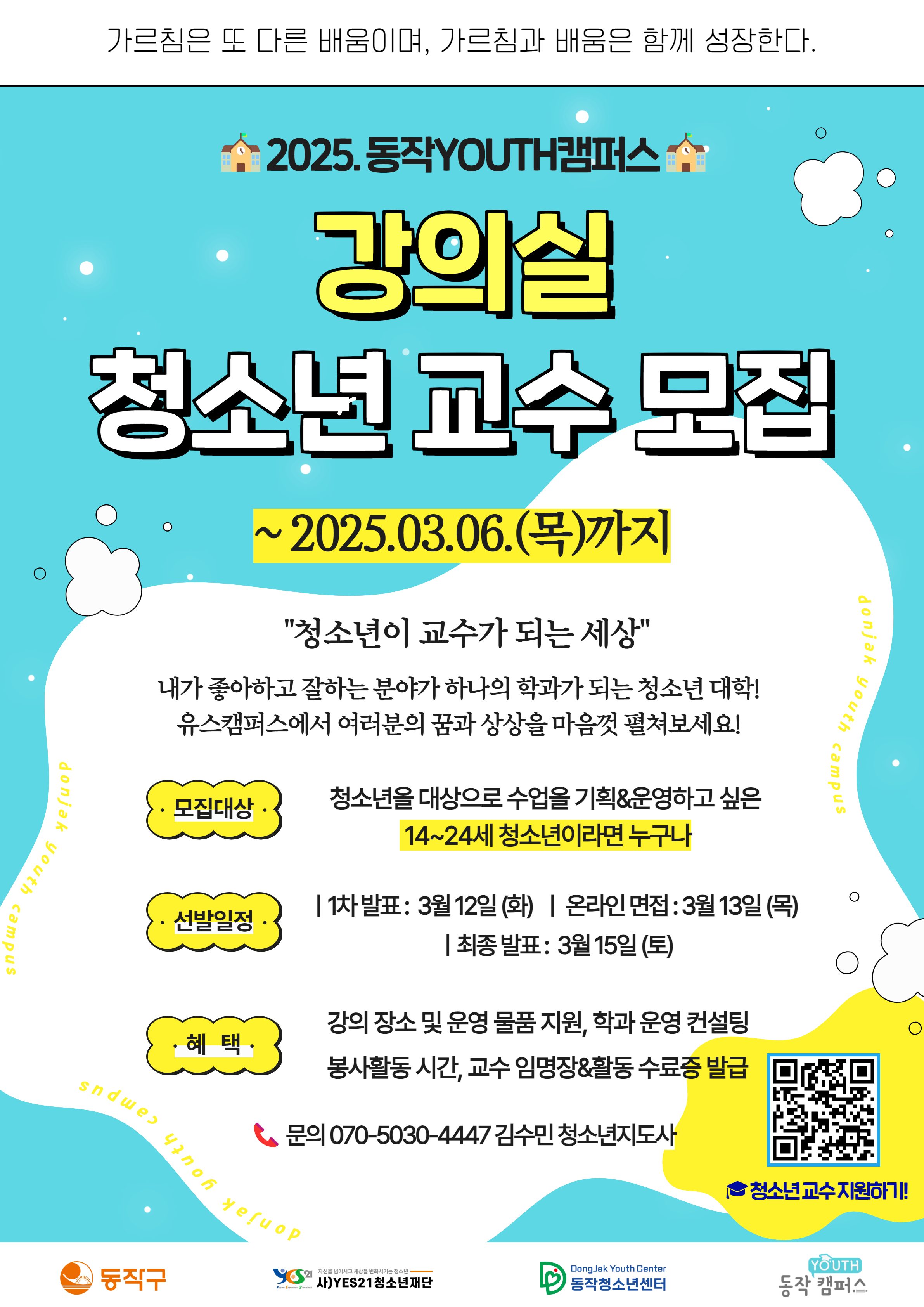[동작유스캠퍼스] 제7기 강의실 청소년 교수 모집🏫