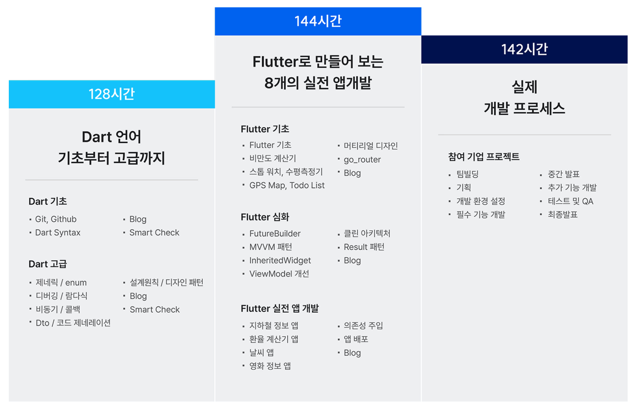 전문 커리큘럼으로 Flutter 개발 역량을 제대로 키워보세요! 💡
