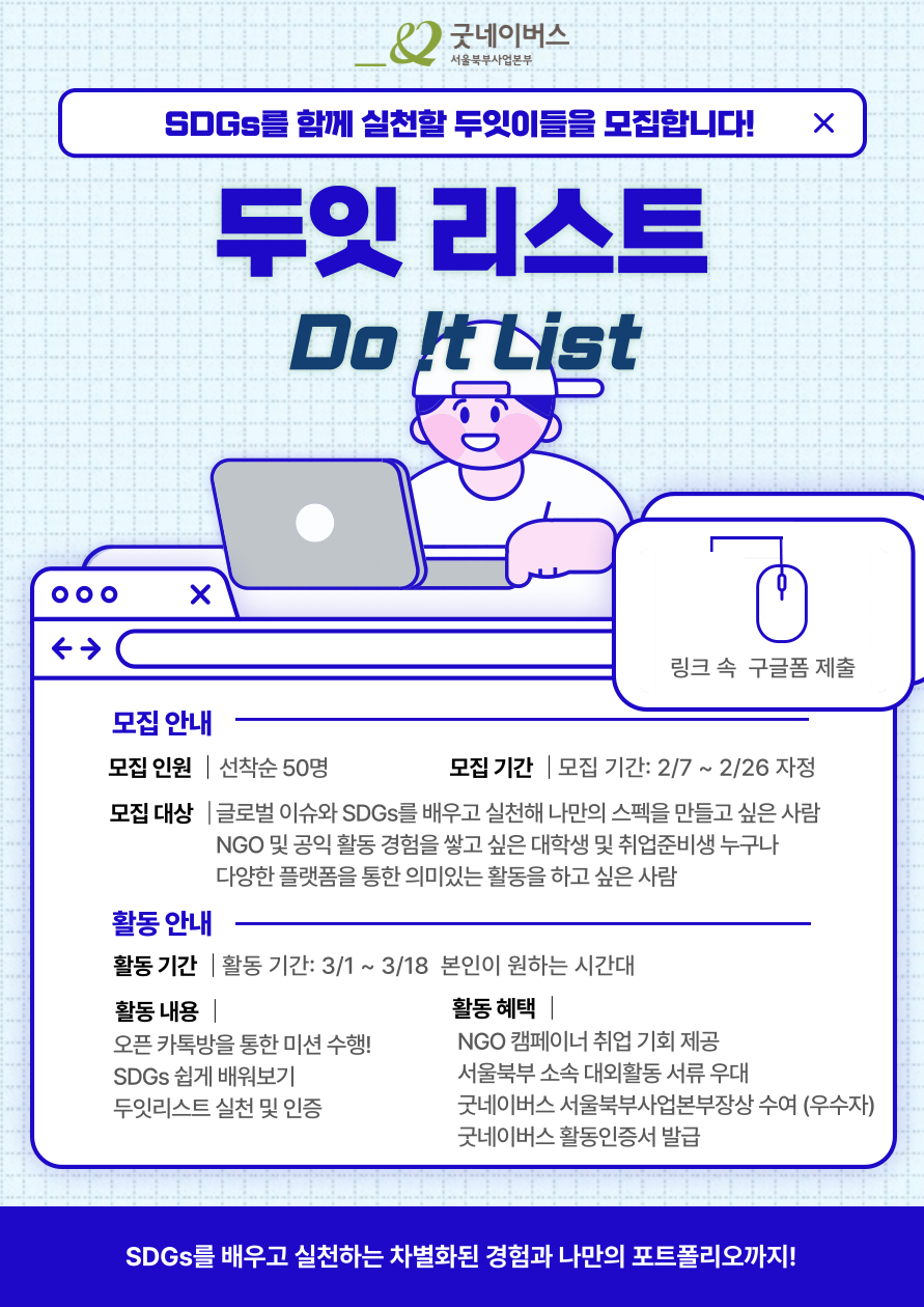 ๐ฅ SDGs ์ค์ฒ ๊ฒฝํ์ ์์ผ๋ฉฐ ๋๋ง์ ํฌํธํด๋ฆฌ์ค๊น์ง ๋ง๋ค๊ณ ์ถ๋ค๋ฉด?