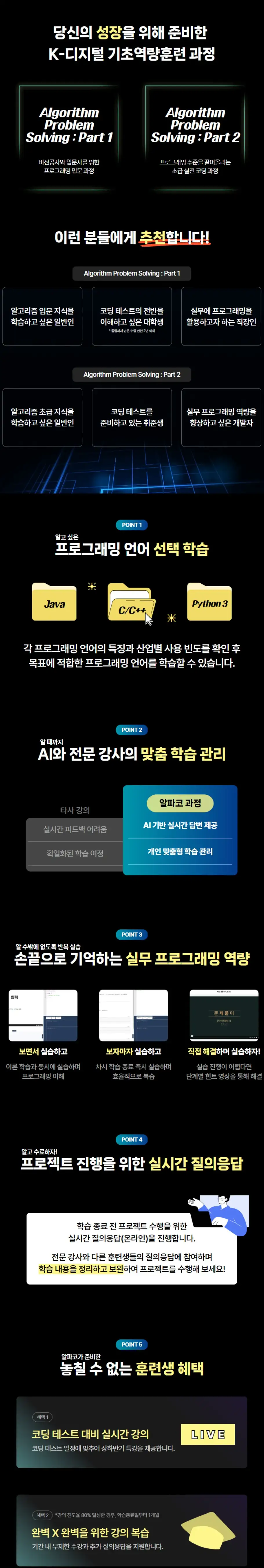 취업경쟁력 강화 : 알고리즘 학습과 취업 코딩 테스트를 연계하여 실제 구직에 활용할 수 있음.