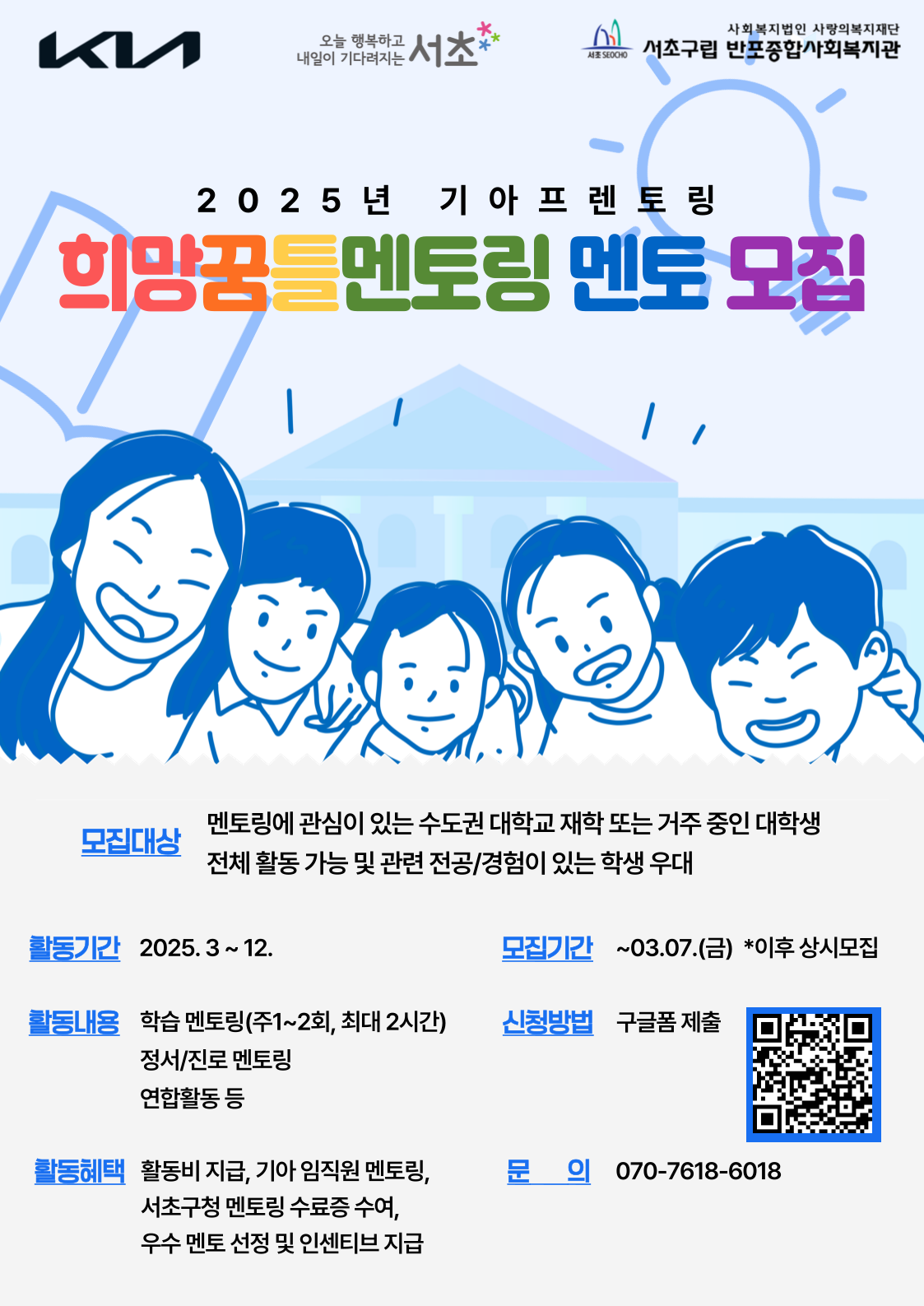 *연 1회 기아㈜ 임직원과 함께 멘토링하는 시간이 있을 예정으로, 멘토분께도 도움이 되는 시간이 되길 바랍니다:)