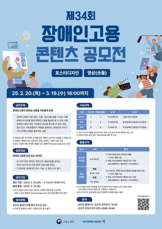 장려 : 4명(팀) 각 50만원, 한국장애인고용공단 이사장상