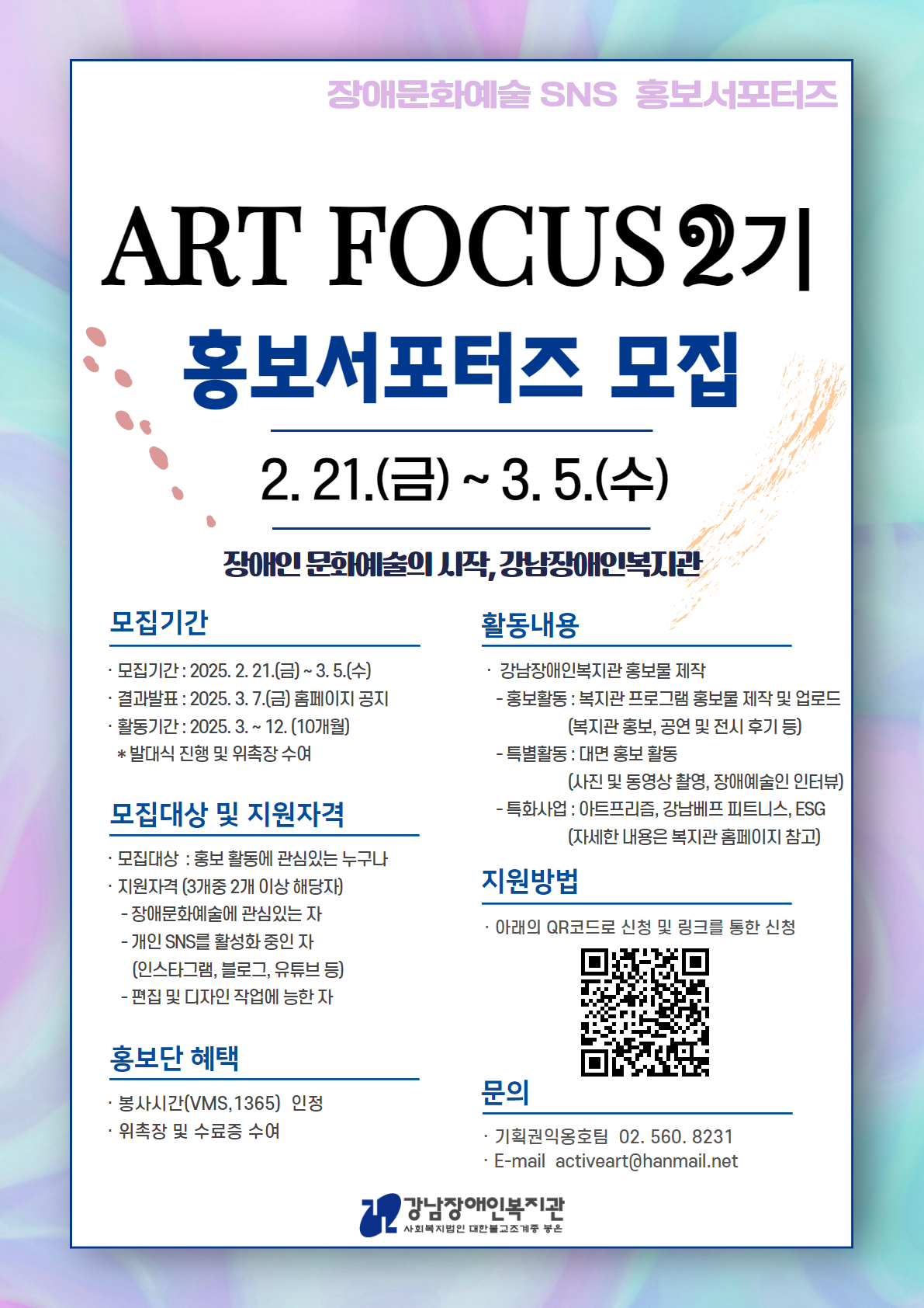 장애문화예술 SNS 홍보 서포터즈 'ART FOCUS' 2기 모집