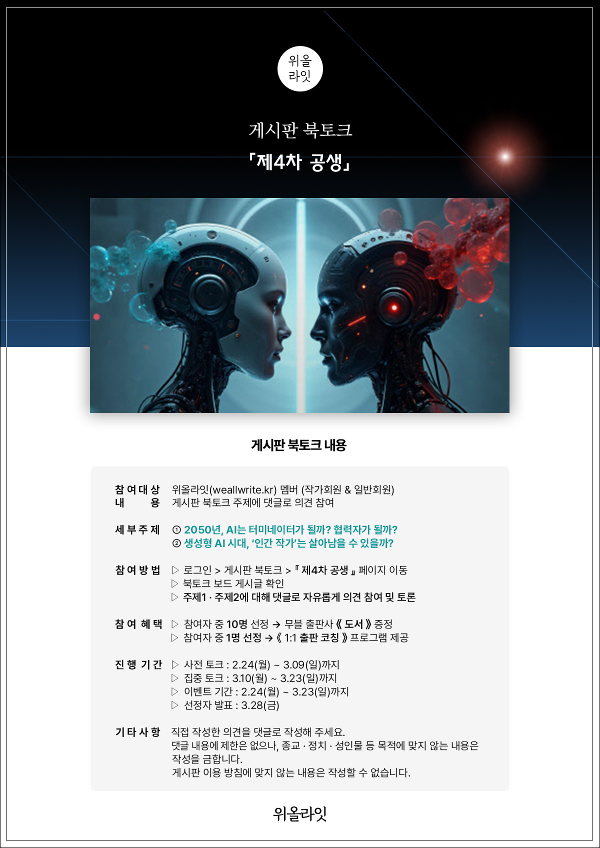 북토크 주제에 대해서 위올라잇 북토크 보드에 댓글로 참여.
