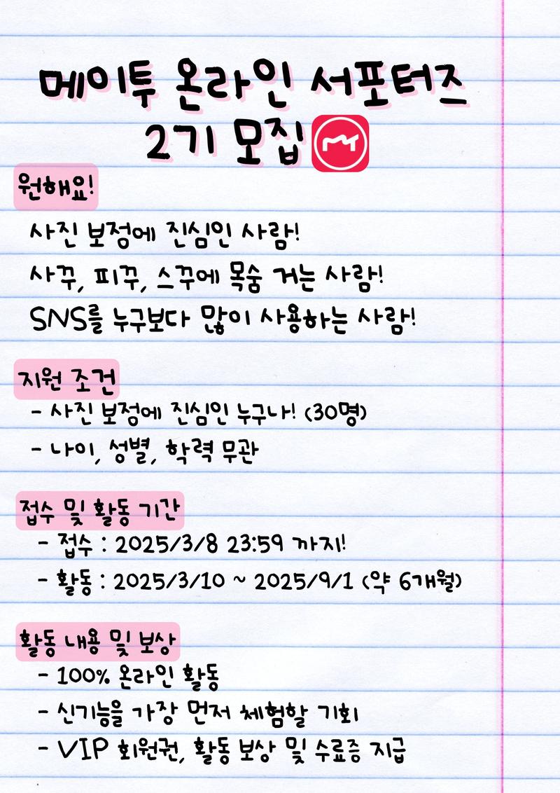 메이투 온라인 서포터즈 2기 모집🩷