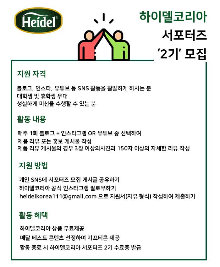 하이델코리아에서 서포터즈 2기를 모집합니다😊